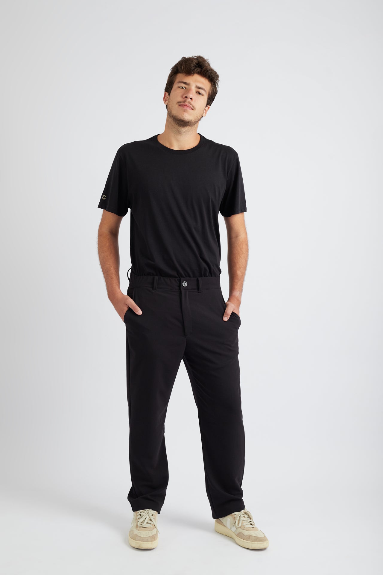 Cós com elástico e cadarço ajustável: máxima flexibilidade e estilo casual.
